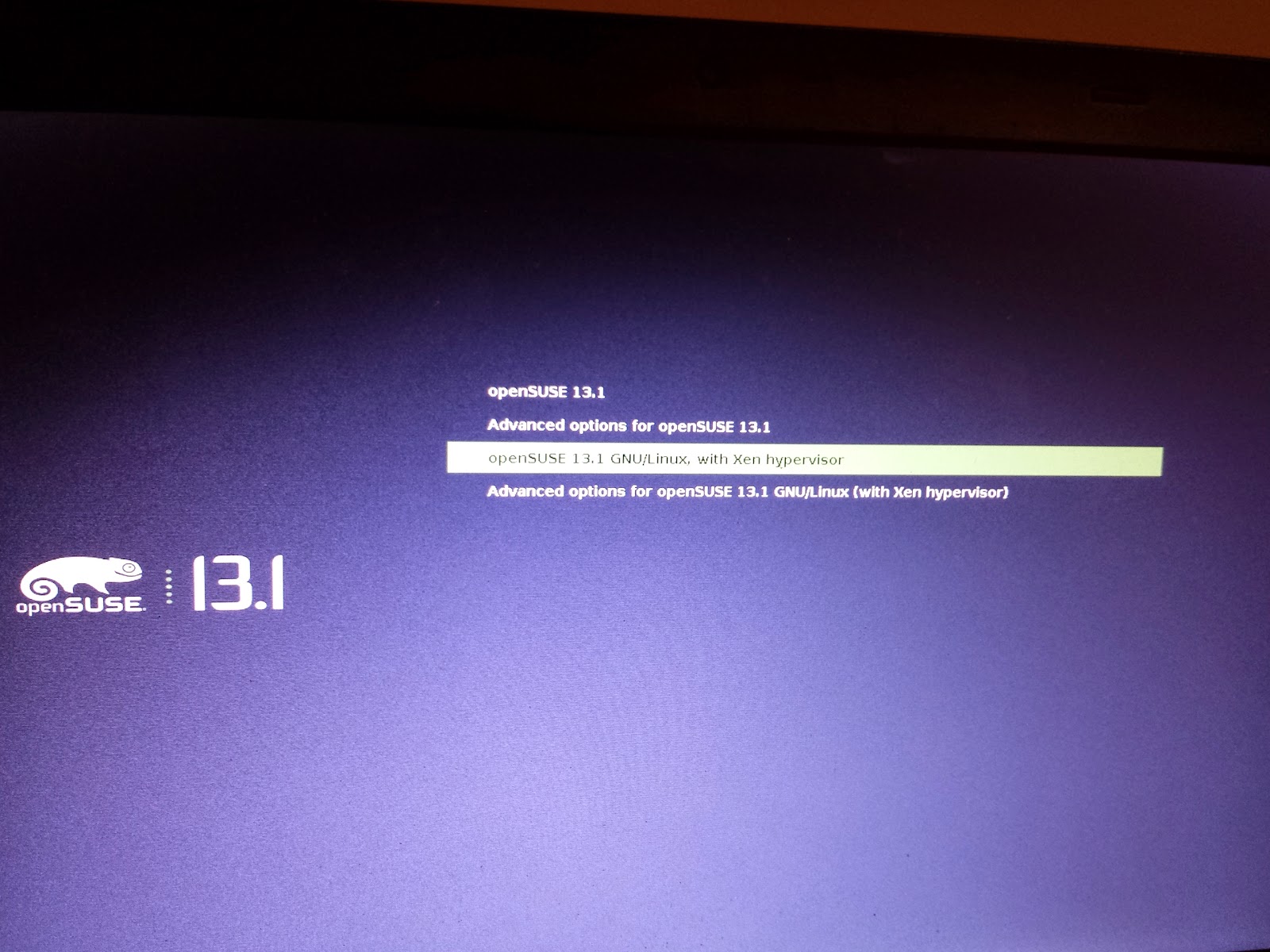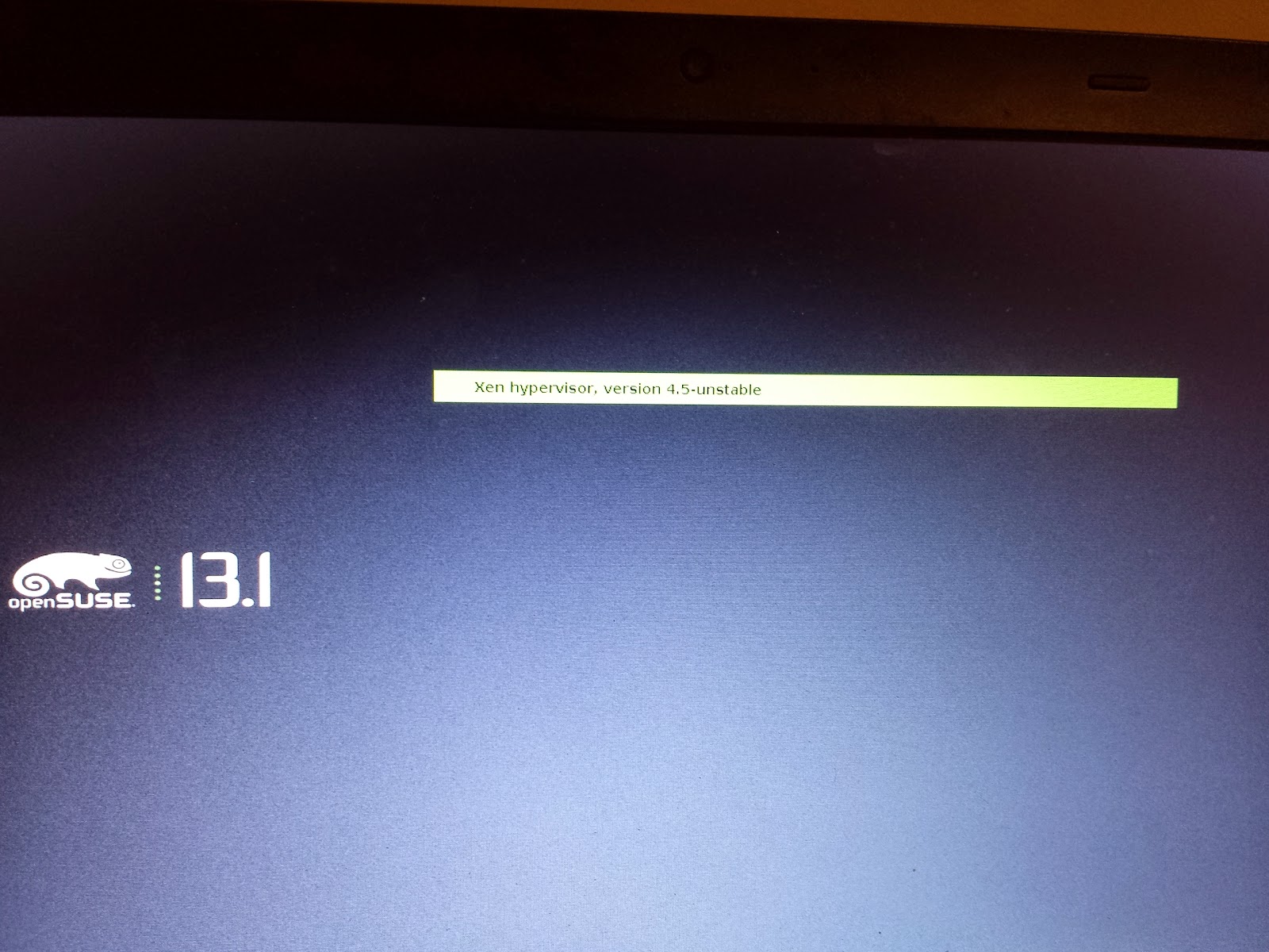 After this you should be booting into the Xen hypervisor and this in turn will boot Linux as dom0.